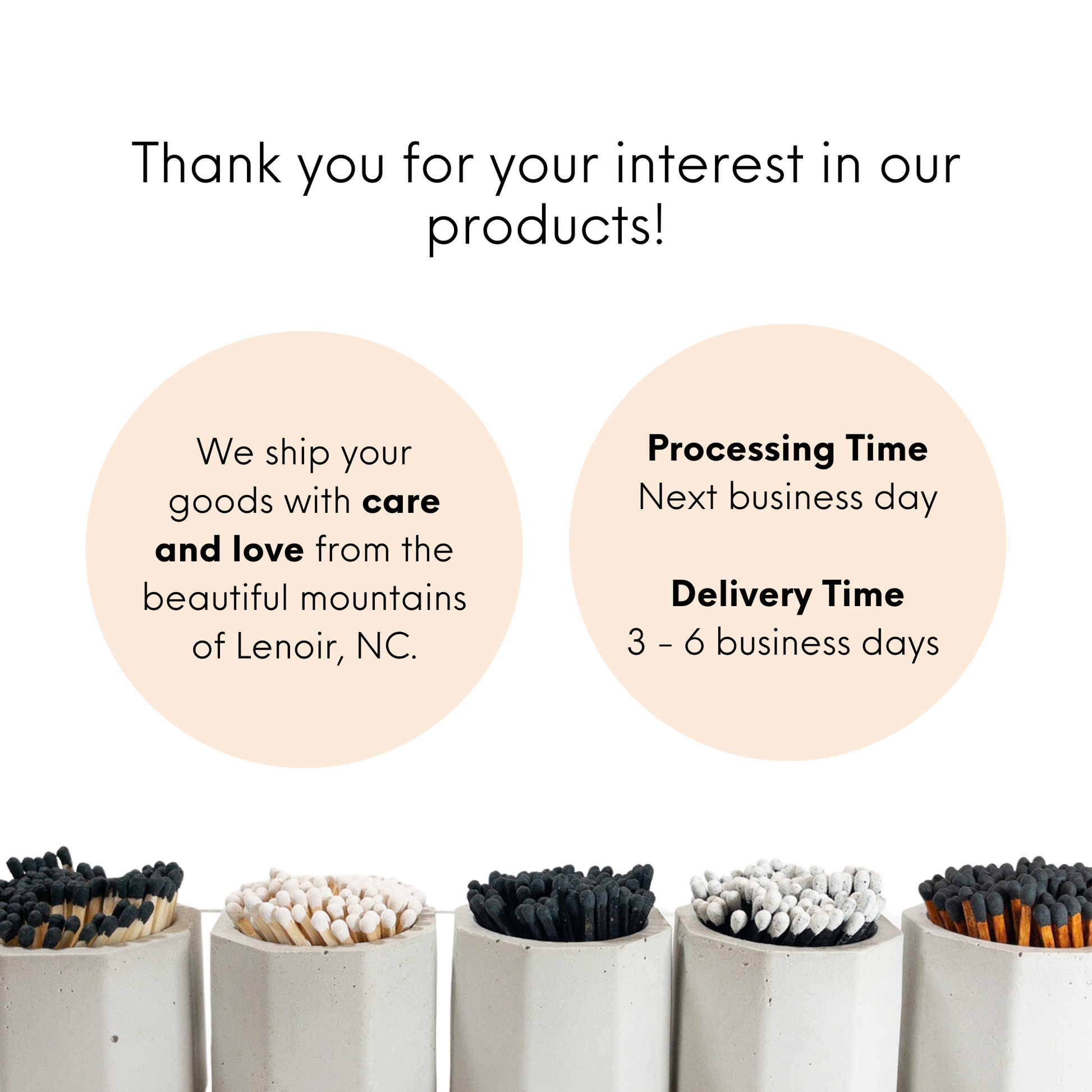 We’re always happy to help! Chat with us live or email us at sales@bulkmatchesusa.com — we’d love to hear from you.