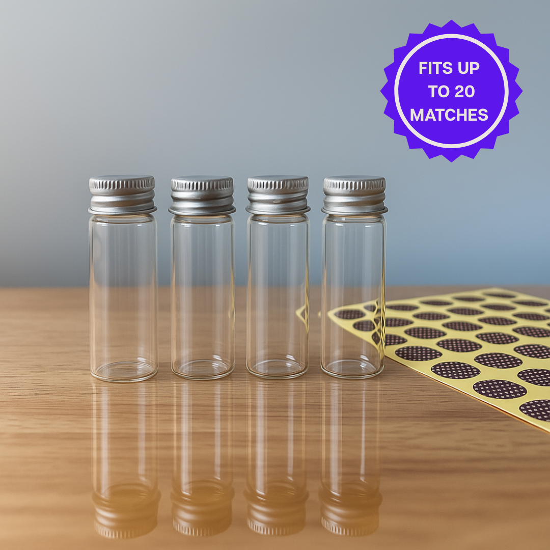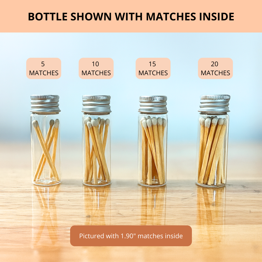 🧯 Designed to perfectly fit our 1.90” matches (sold separately). Each bottle holds approximately 15 to 20 matches.