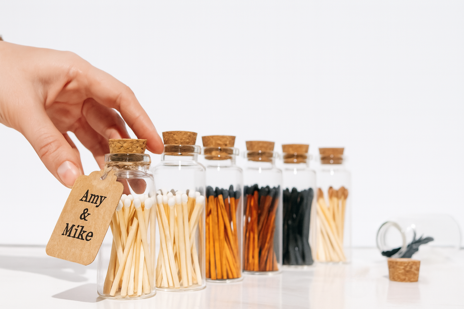 Unique and original, our White Faux Cedar Tip Safety Matches blend elegance with a soft rustic charm. A lovely choice for nature-inspired and minimalist designs.